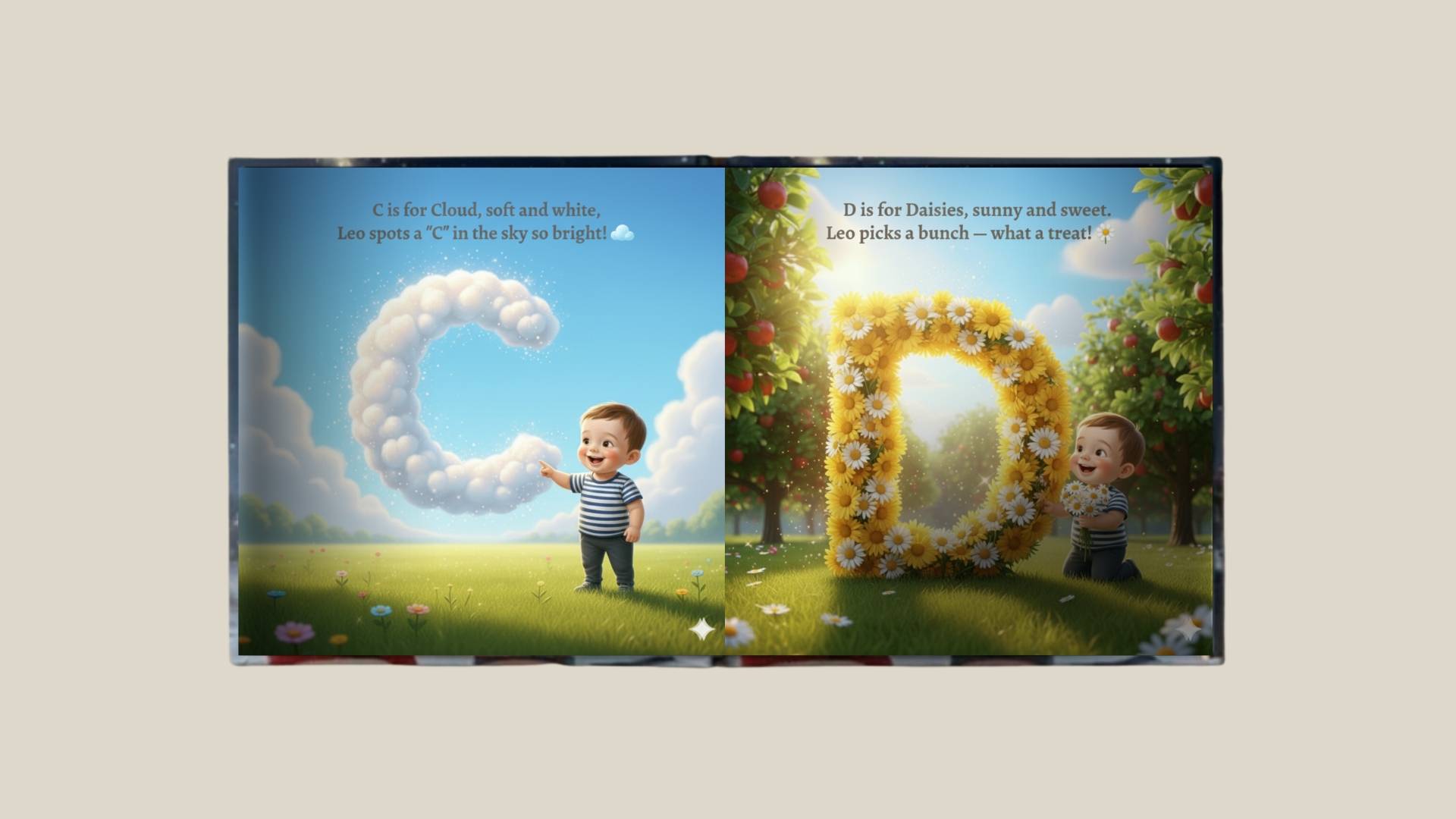 Make learning letters a magical adventure with Leo as your child’s guide. Explore colorful landscapes, playful animals, and fun objects from A to Z. Each page combines learning, imagination, and laughter in a personalized way. A vibrant, interactive storybook that makes early literacy exciting and memorable.